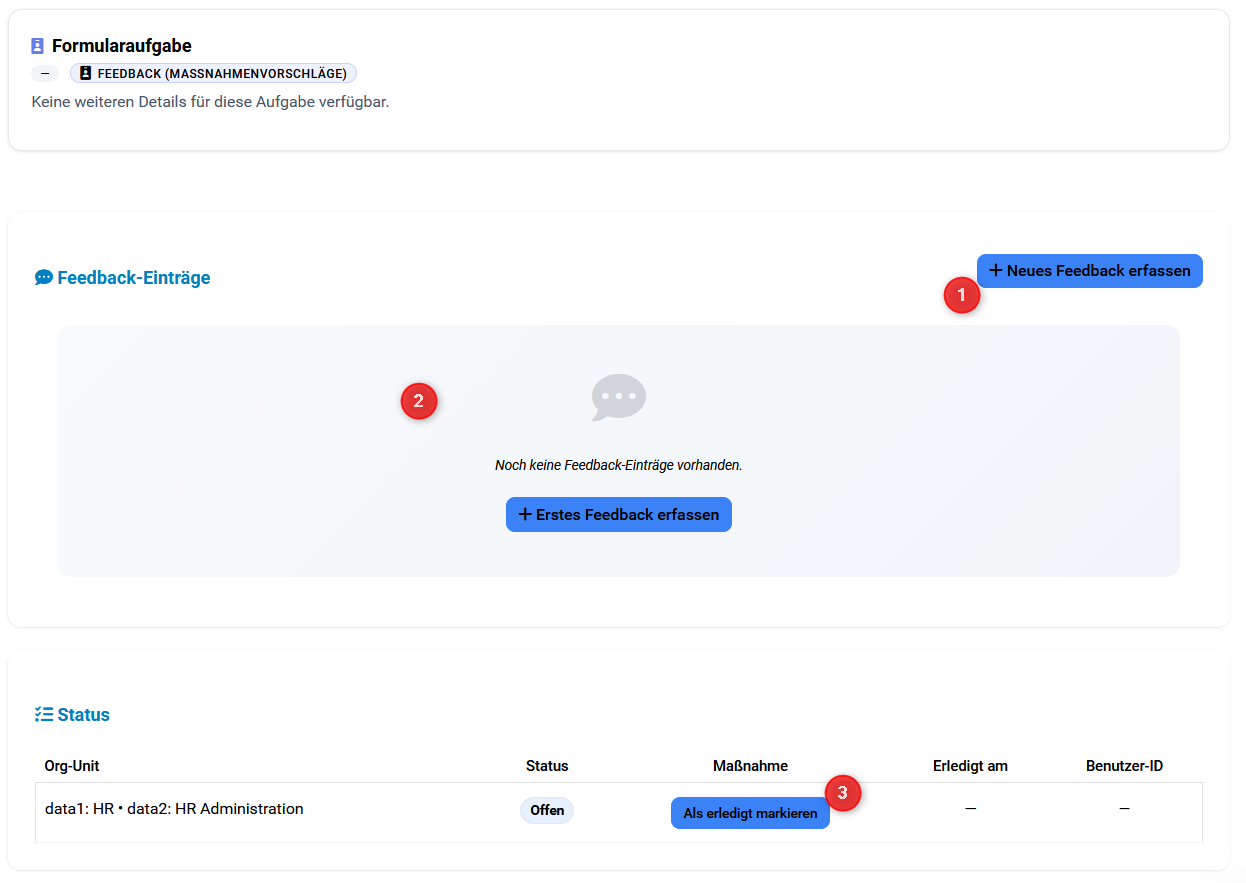 - Klicke erst auf „als Erledigt markieren“, wenn alle Einträge vollständig sind.